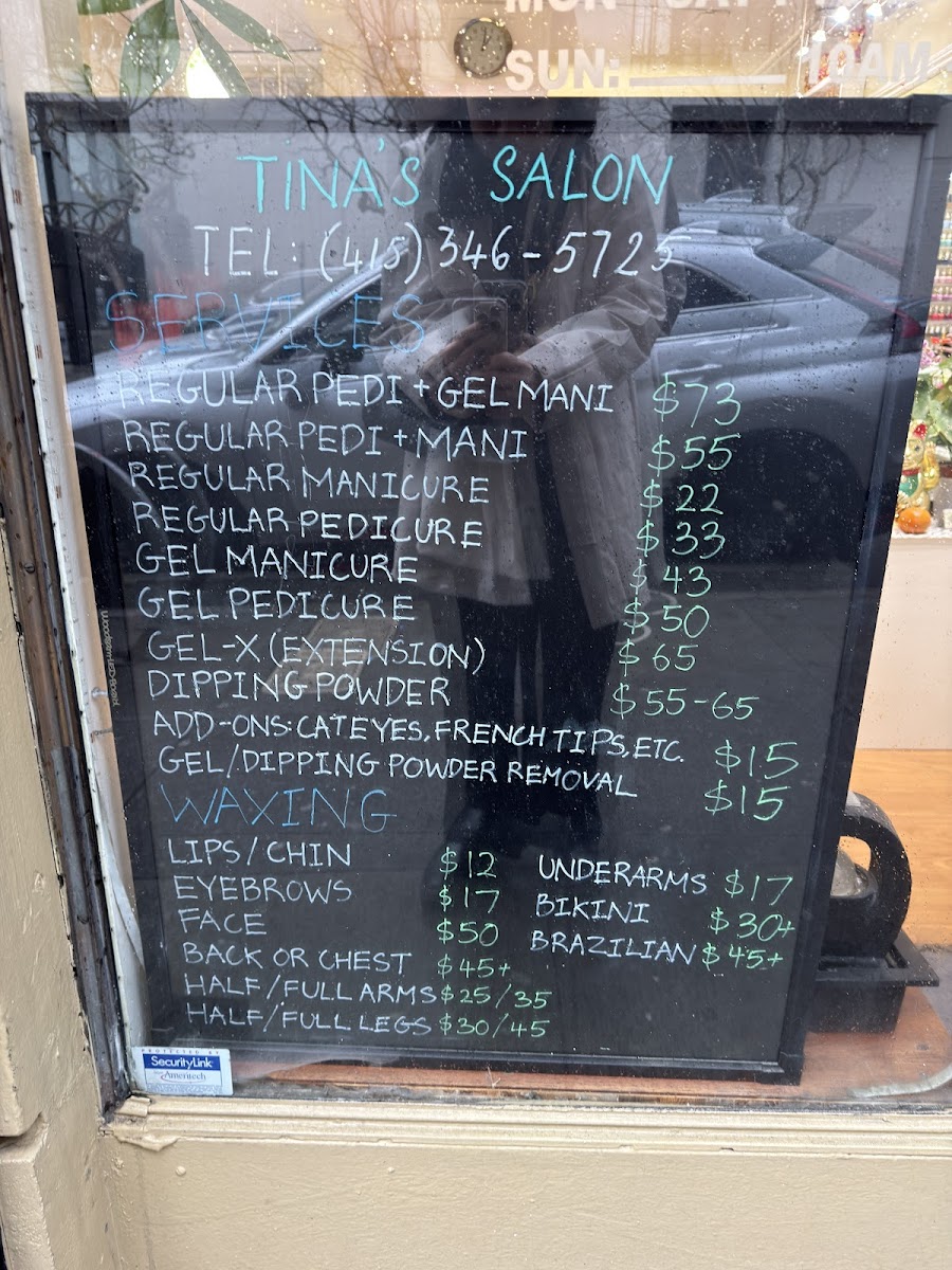 These services focus on nail grooming, polish application including gel and dip options, and general nail maintenance. The menu is suitable for individuals seeking routine nail care, polish updates, or repairs, and can accommodate both appointments and walk-in clients. Services are typically utilized for personal grooming and aesthetic upkeep without accompanying food or drink options.